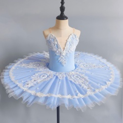 Váy tutu múa ba lê chuyên nghiệp cho trẻ em kiểu thiên nga nhỏ màu xanh nước biển, kiểu pancake tutu giá rẻ hơn dành cho biểu diễn và trình diễn múa ba lê